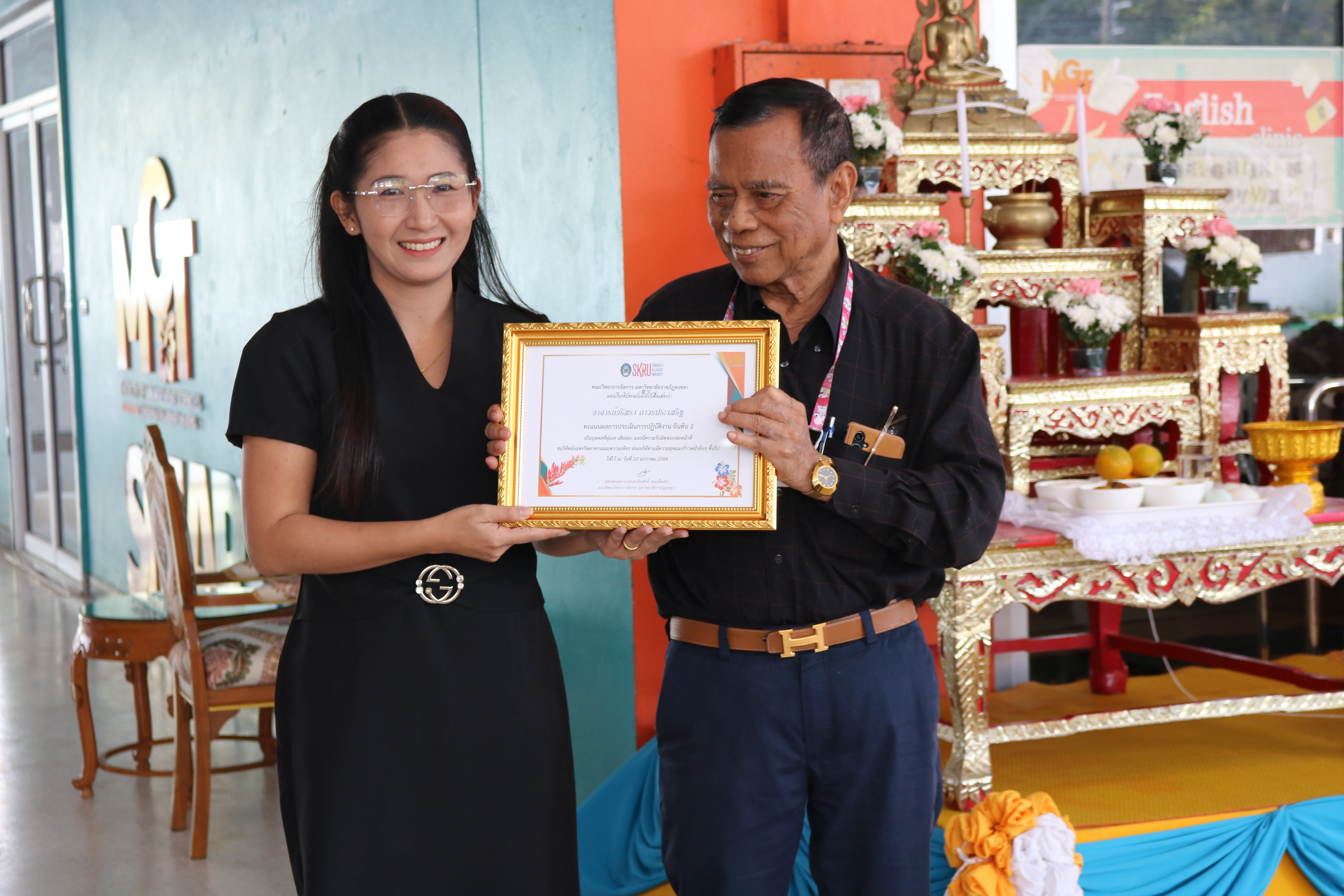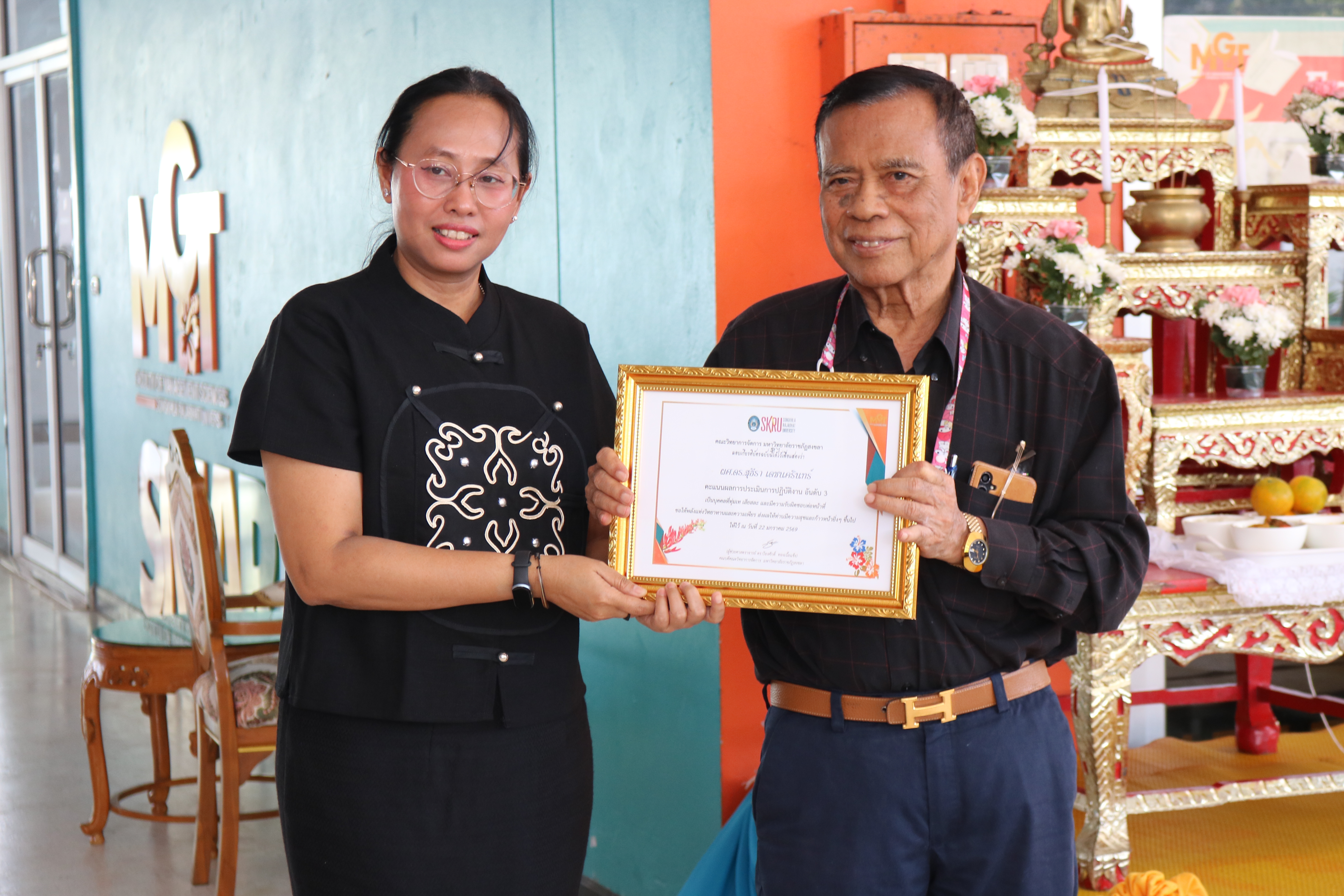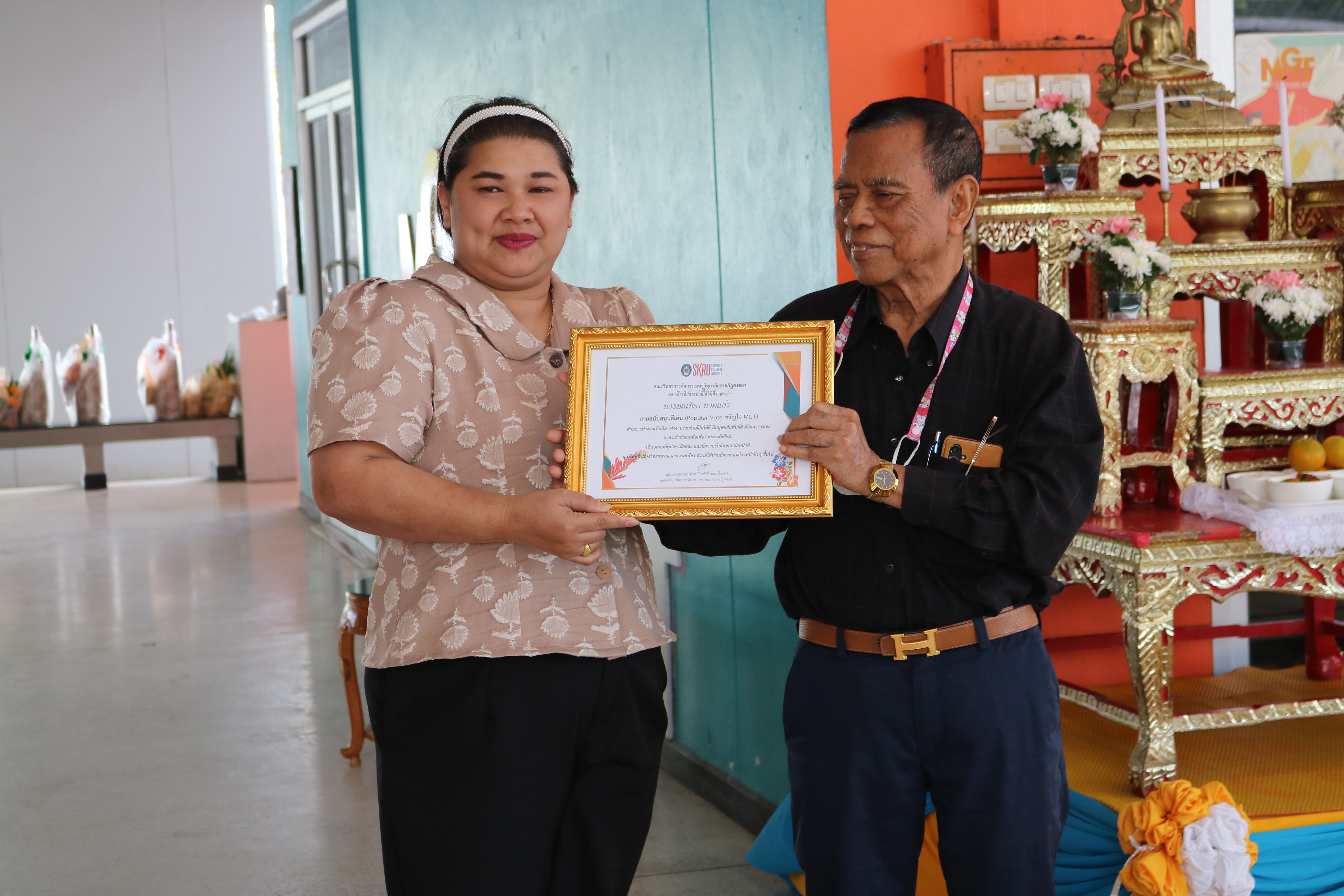 พิธีมอบเกียรติบัตรอาจารย์ บุคลากร ในกิจกรรมทำบุญคณะและ โครงการอบรมเชิงปฏิบัติการ  เรื่อง สืบสานถ่ายทอดความเป็นไทยและวัฒนธรรมองค์กร