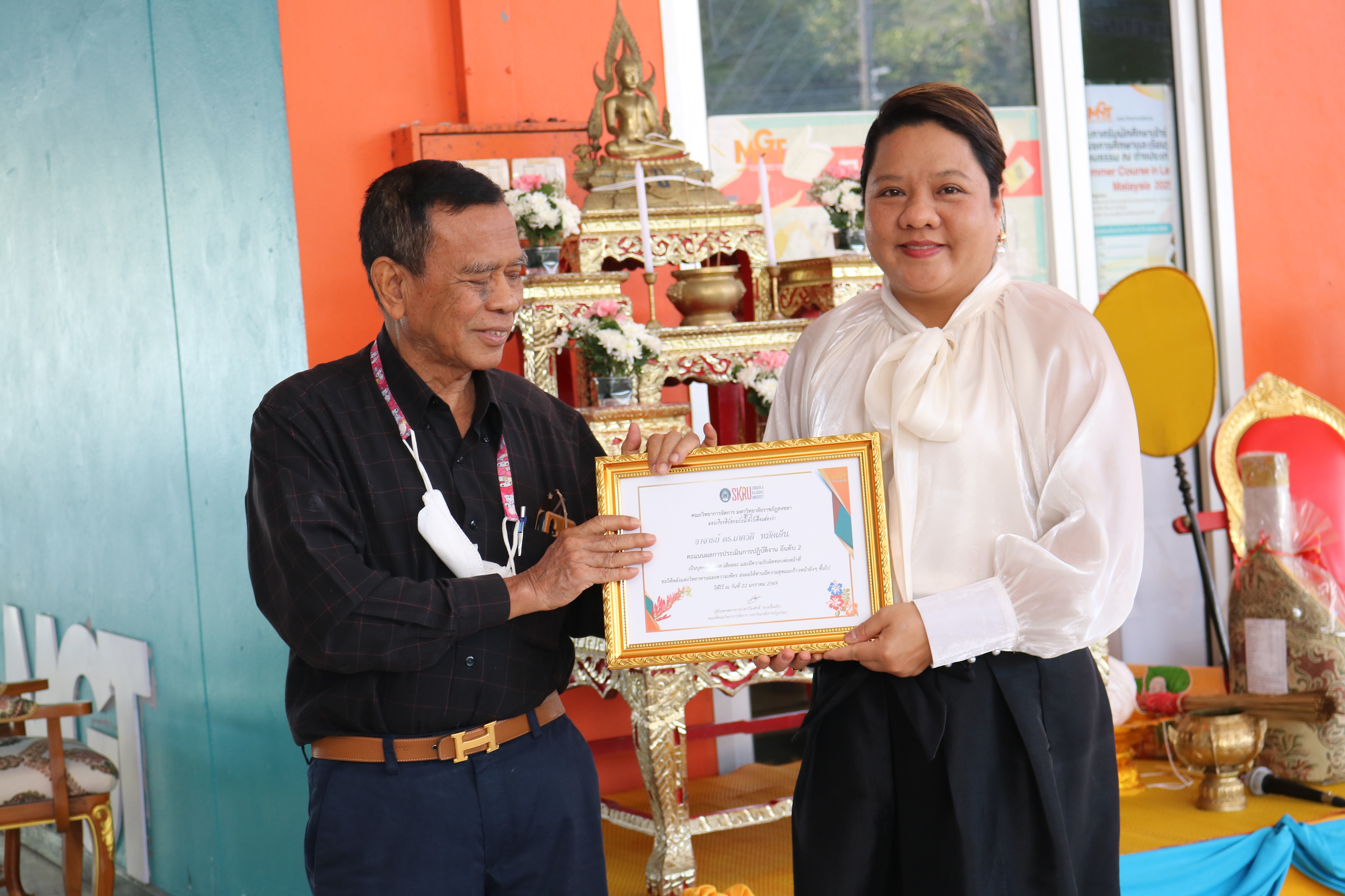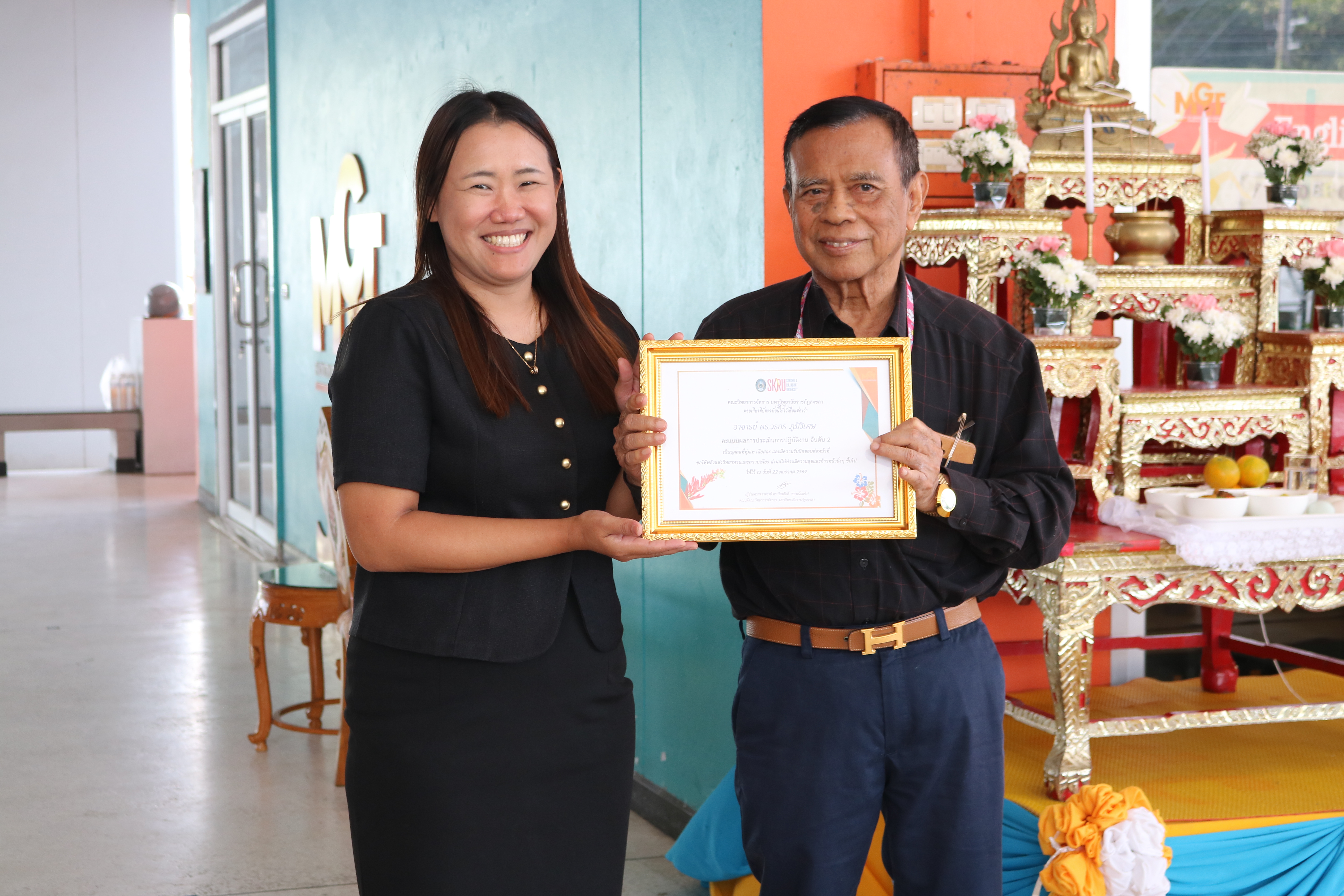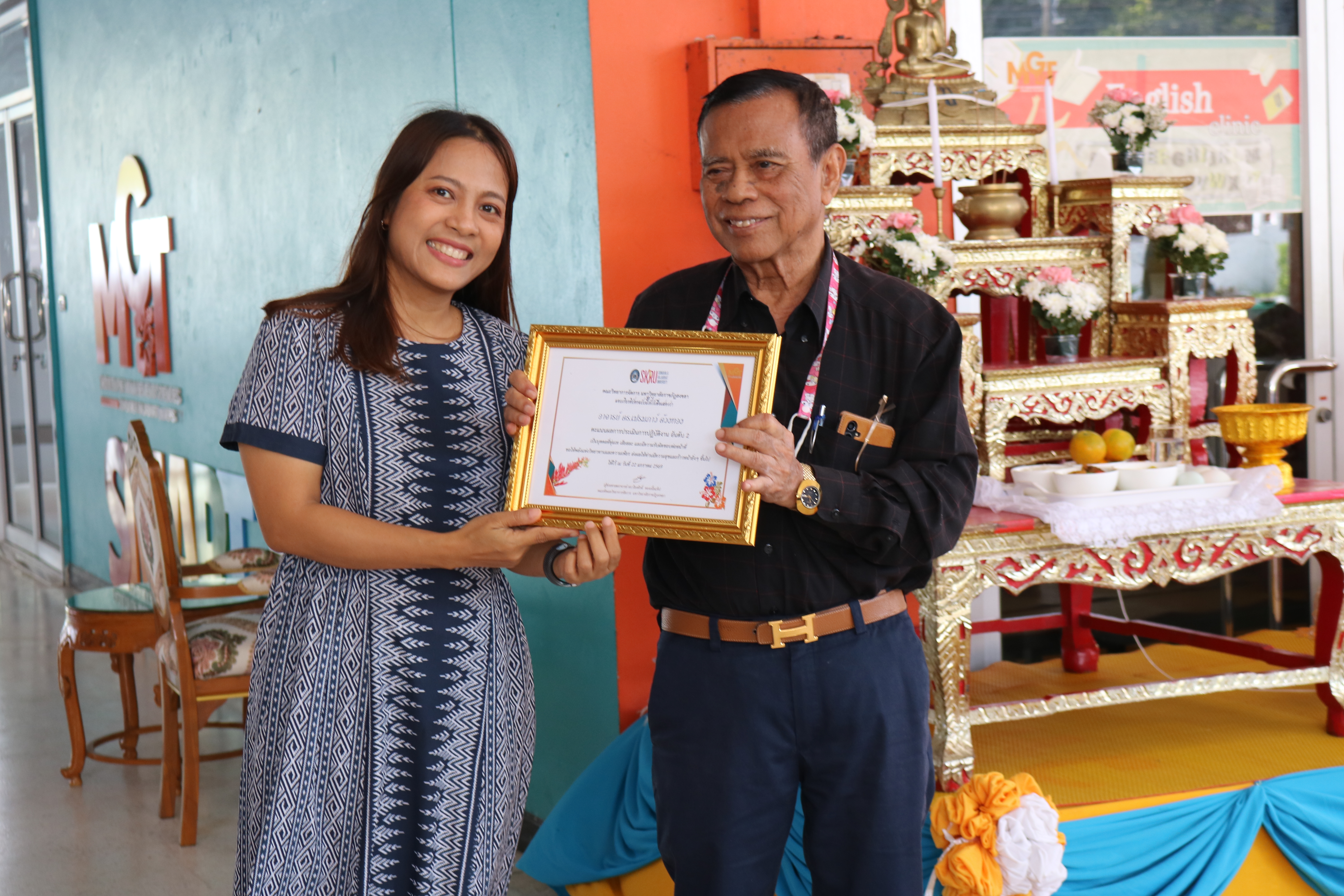 พิธีมอบเกียรติบัตรอาจารย์ บุคลากร ในกิจกรรมทำบุญคณะและ โครงการอบรมเชิงปฏิบัติการ  เรื่อง สืบสานถ่ายทอดความเป็นไทยและวัฒนธรรมองค์กร